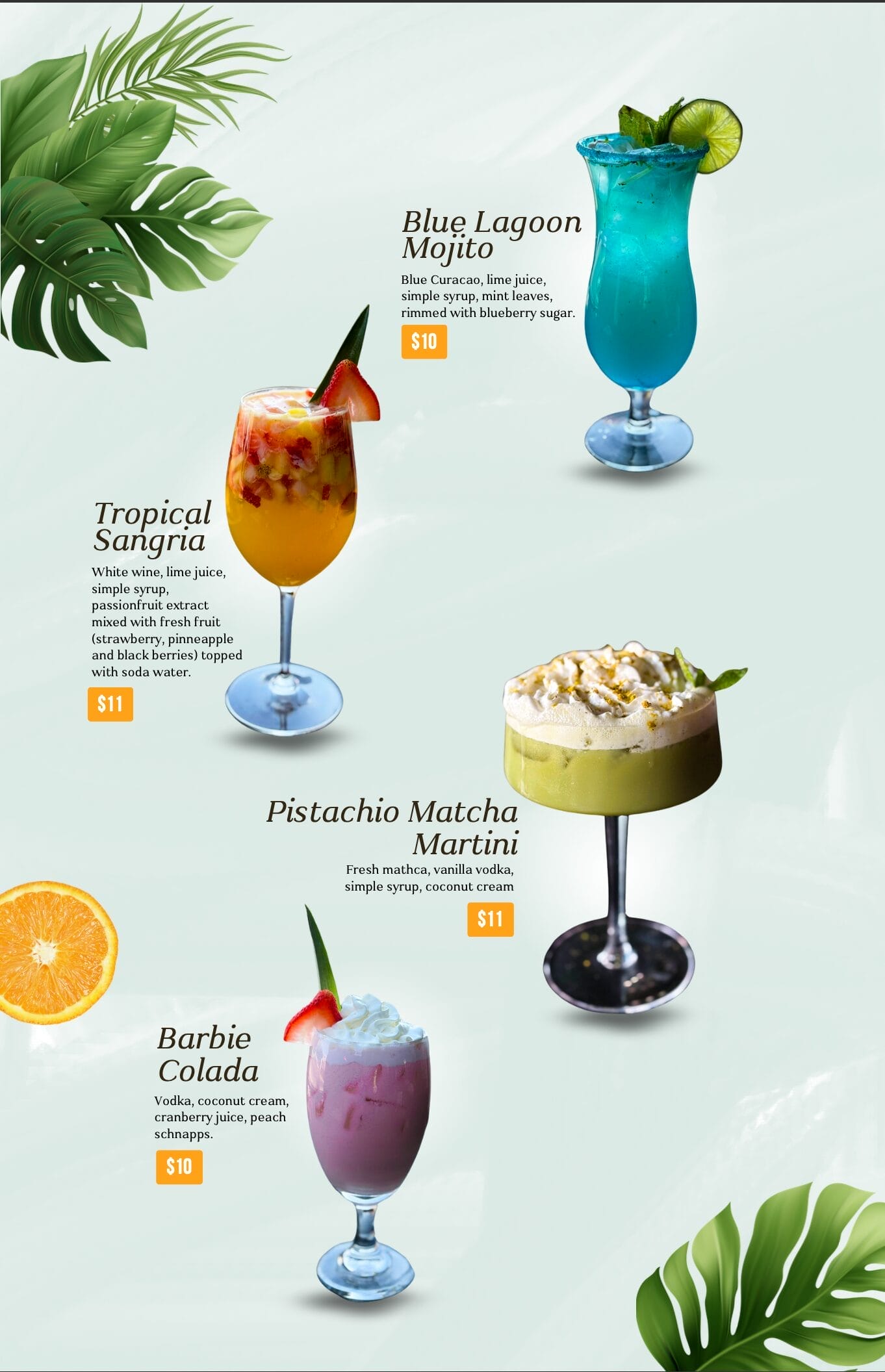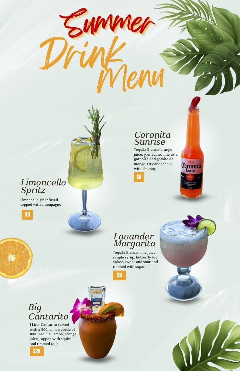 Summer Cocktails Menu